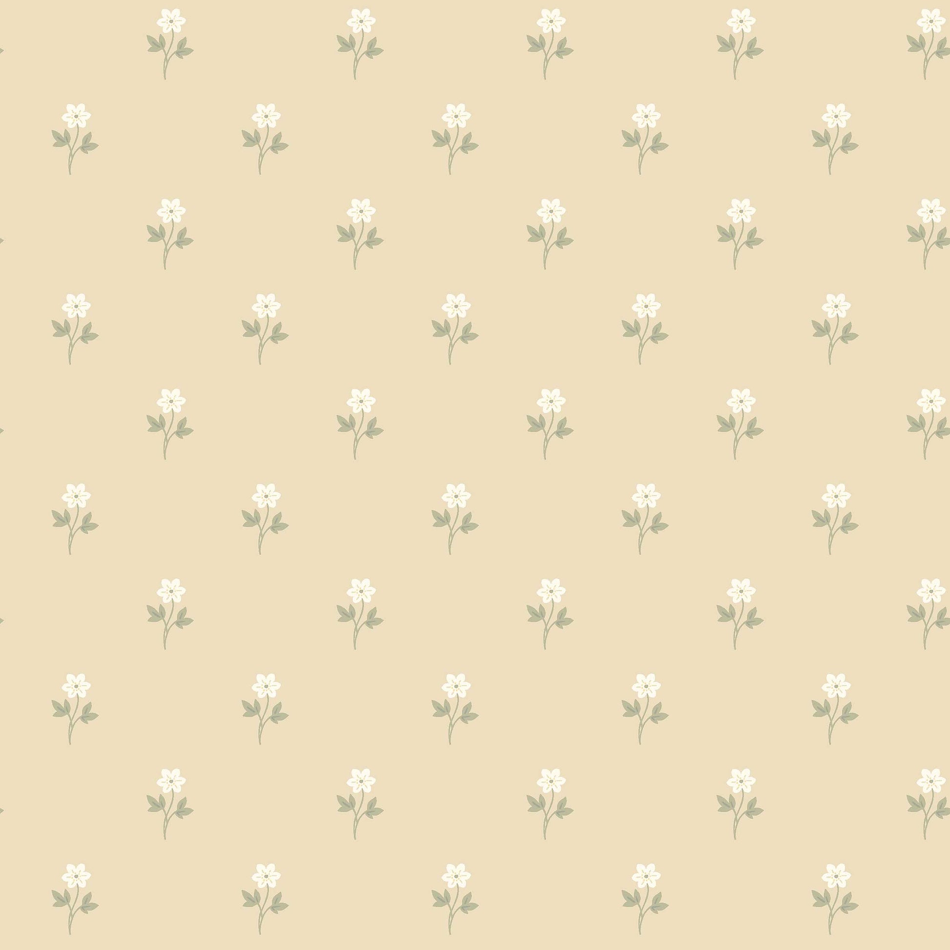 Anemone on klassinen kukkatapetti, jota koristavat suloiset valkovuokot. Ilmava ja vaalea kuosi tuo mieleen keväiset valkovuokkoniityt.Tässä Anemone-tapetissa on lämpimän valkoisia kukkia ja oliivinvihreitä lehtiä lämpimän vaaleankeltaisella taustalla. Perinteinen liimapaino antaa tapetille puuterimaisen ja eläväisen ilmeen, joka luo pehmeän ja kotoisan vaikutelman.