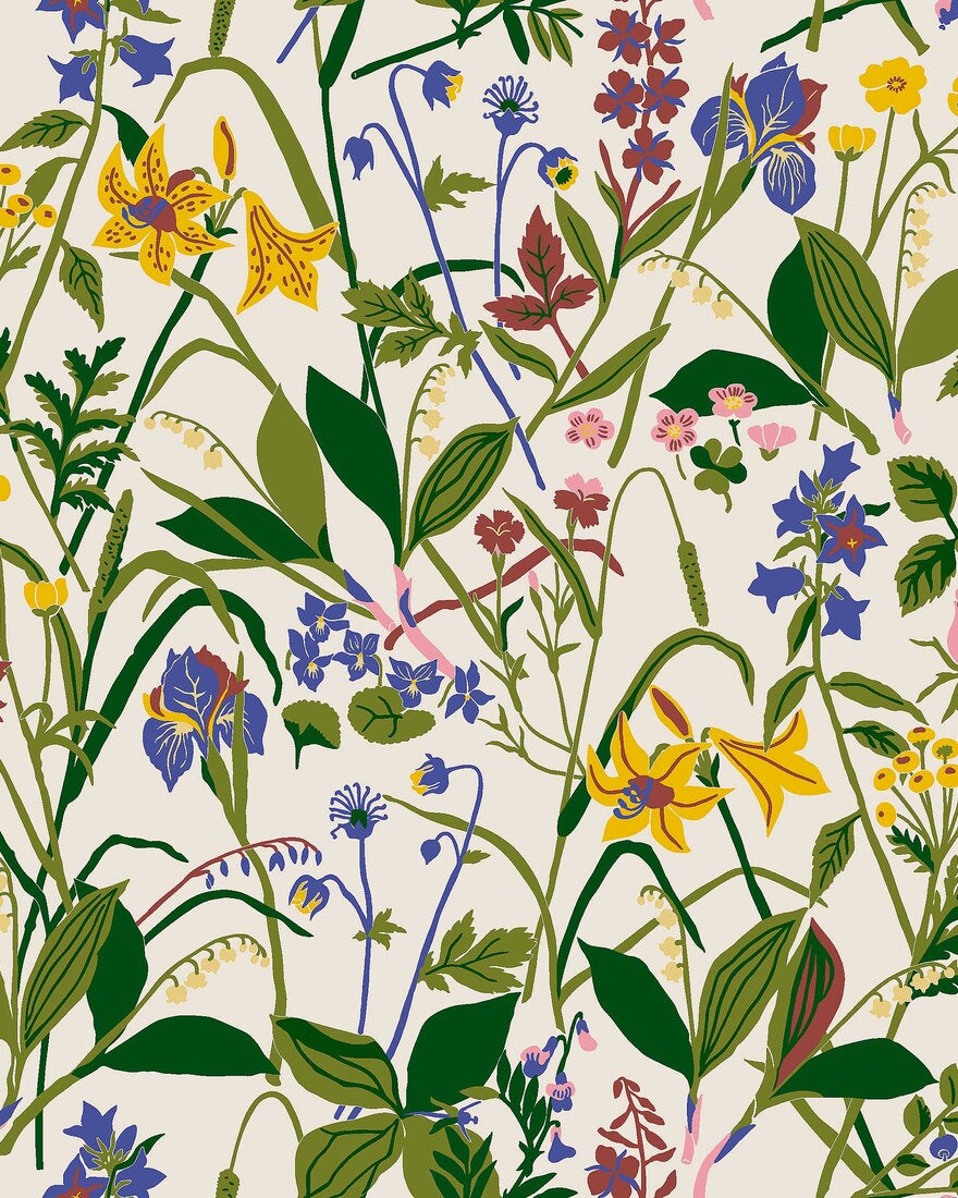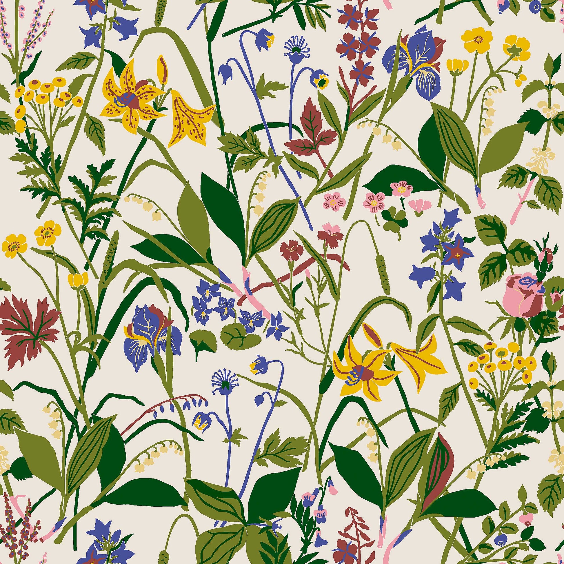 Ros och Lilja on yksi todella klassisista ruotsalaisista tekstiilikuoseista. Nyt tämä luonnonkukkien, ruusujen ja liljojen ihastuttava yhdistelmä on saatavana tapettina!Ros och Lilja -kuosista on kolme rohkeaa värivaihtoehtoa, joista jokaisella on omanlaisensa ilme. Tässä näet kukkatapetin luunvalkoisella taustalla, joka luo kevyen ja ilmavan vaikutelman.