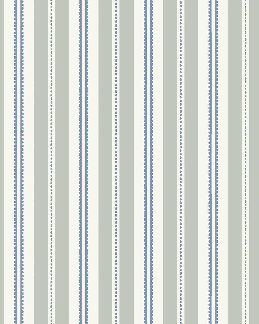 Hedda on ajaton raitatapetti, jossa on omaleimaista ilmettä: pisteet ja aaltoilevat raidat tuovat muuten tiukkalinjaiseen kuosiin leikkisyyttä ja kodikkuutta. Tapetin on suunnitellut Jenny Hahne Gadd ja se on painettu perinteisellä liimapainatuksella, joka tekee pinnasta kauniin elävän.Tässä on Hedda-raitatapetti kermanvalkoisissa ja hillityn vaaleanvihreissä väreissä, joiden rinnalle on lisätty hieman heleän ja lämpimän sinisiä sävyjä.