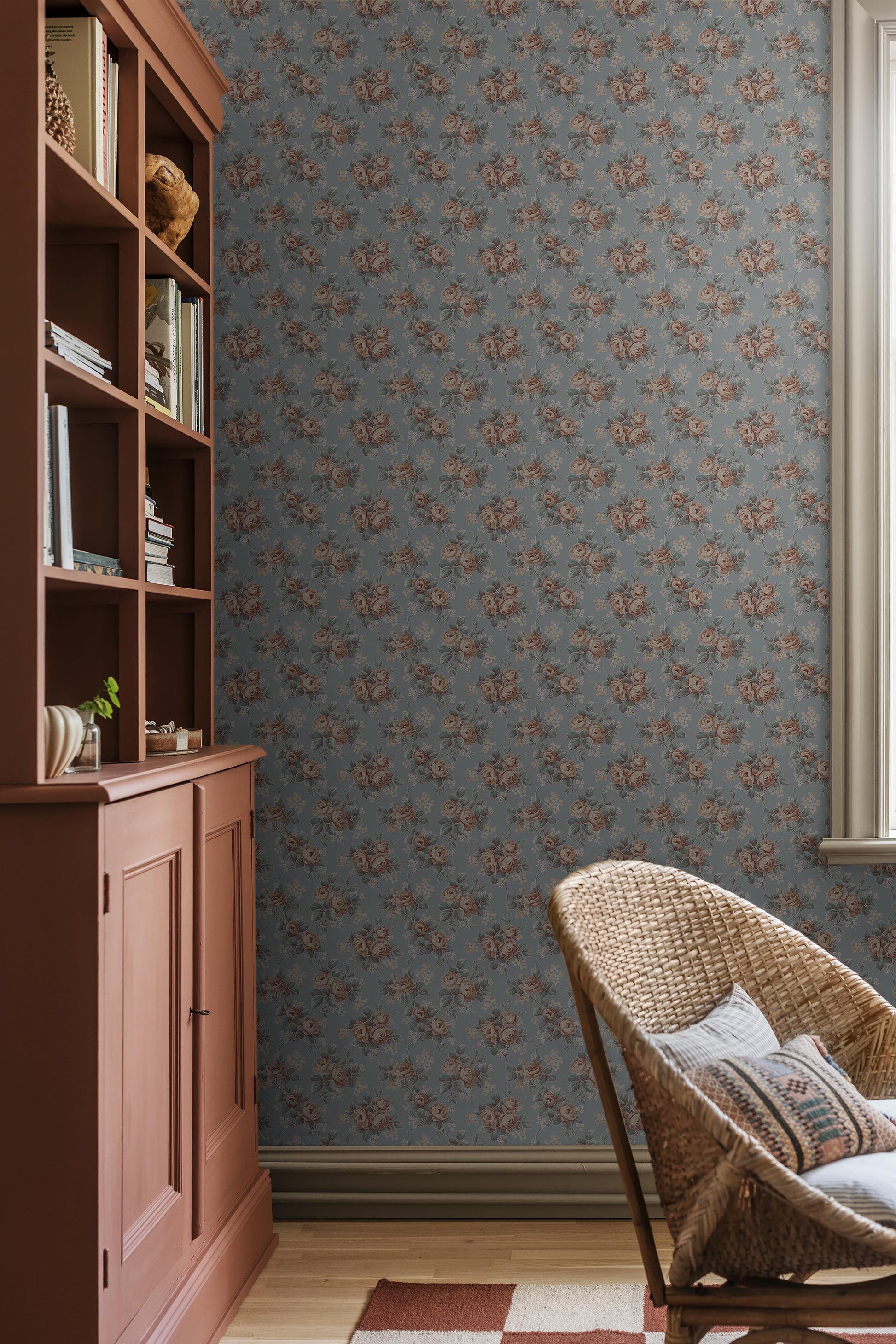 Vaaleansininen, kukkakuvioinen Helena-tapetti on uudelleenpainettu versio ihanasta tapetista historiallisesta arkistostamme. Romanttinen kuvio ja elävä, liimapainettu pinta tuovat huoneeseen pehmeän, ajattoman eleganssin tunnun.Tässä näet Helenan kukkaryppäät hillityissä aprikoosin, petrolinsinisen ja kermanvalkoisen sävyissä lempeän taivaansinisellä taustalla.