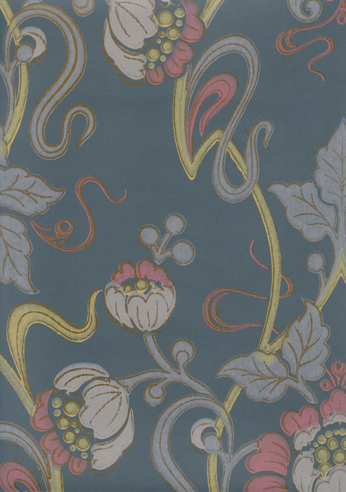 Klassinen jugendtapetti, jonka kukkaköynnökset luovat upean rytmikkään pinnan! Suurikuvioinen malli.