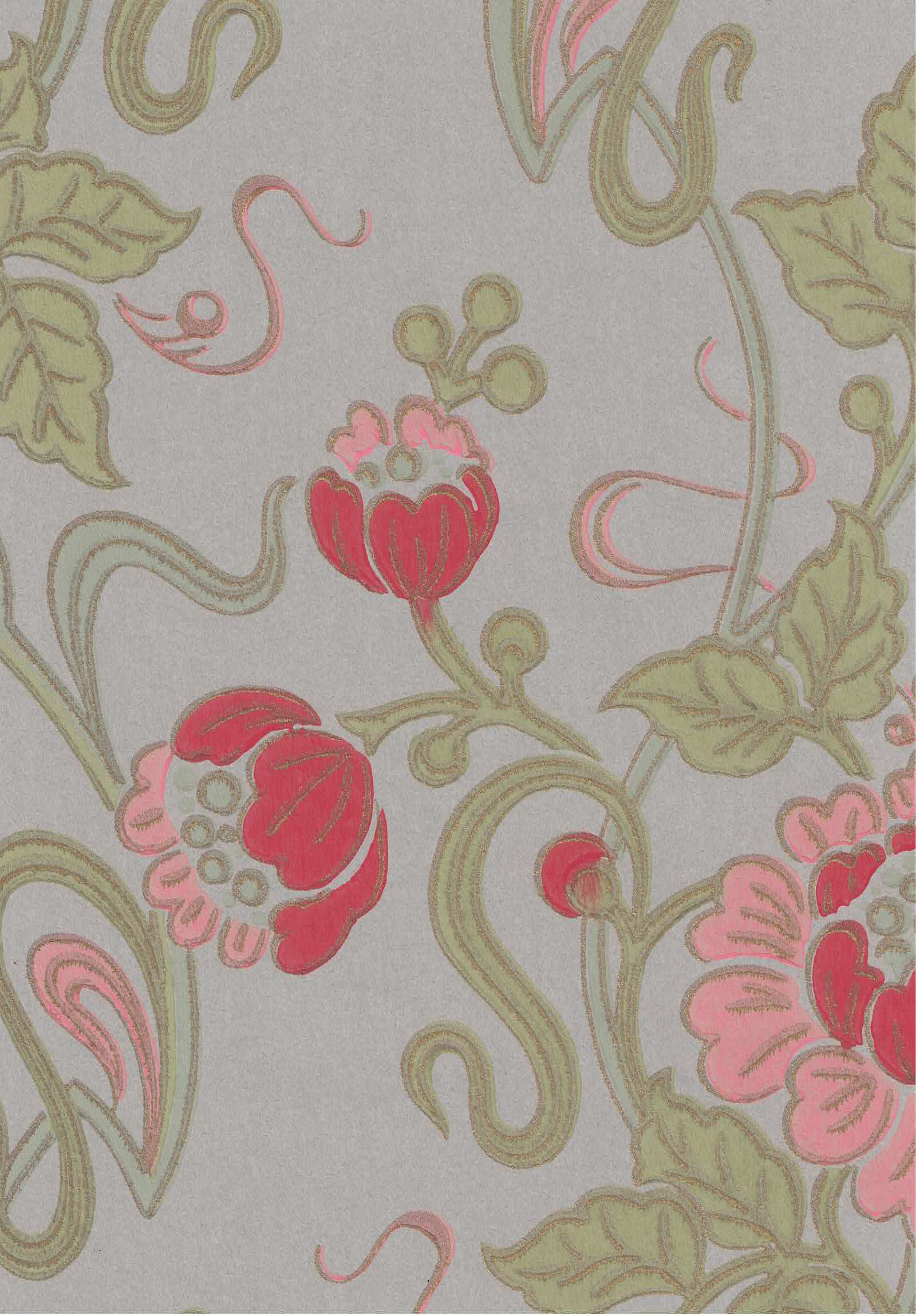 Klassinen jugendtapetti, jonka kukkaköynnökset luovat upean rytmikkään pinnan! Suurikuvioinen malli.