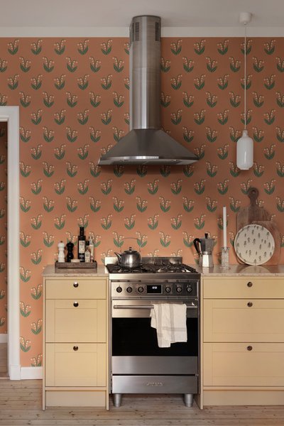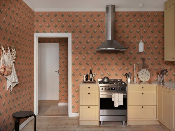 Lilly-tapetissa on rakastettu laaksonlilja, jonka muoto on graafisen yksinkertainen ja siro. Järeät varret ja viehättävät kellot luovat koristeellisen tunnelman, joka lisää luonnetta mihin tahansa tilaan. Täydellinen niille, jotka arvostavat tyylikkään muotoilun ja luonnon kauneuden yhdistelmää, tämä tapetti tarjoaa lämpimän ja kutsuvan tunnelman hienovaraisella mutta silmiinpistävällä kuviollaan.