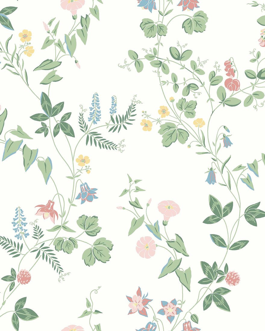 Hieno, kukallinen Midsummer Eve -tapetti on saanut innoituksensa ruotsalaisesta juhannusperinteestä, jossa poimitaan seitsemän erilaista kukkaa. Kuosi on suunnittelijamme Jenny Hahne Gaddin käsin maalaama. Se on toteutettu perinteisellä liimapainotekniikalla. Kuosissa on sinikelloja, voikukkia, apiloita, akileijoja ja muita kukkia pehmeissä keltaisen, roosan, punaisen, sinisen ja vihreän sävyissä puhtaanvalkoista mattapintaista taustaa vasten. Vaalea tapetti luo kasteenraikkaan, kesäisen tunnelman esimerkiksi makuuhuoneeseen, keittiöön tai ruokailutilaan.
