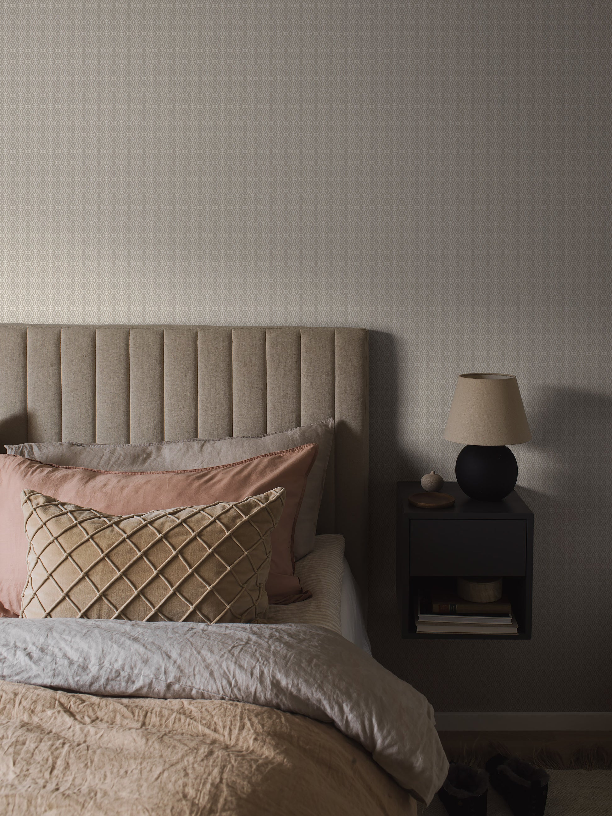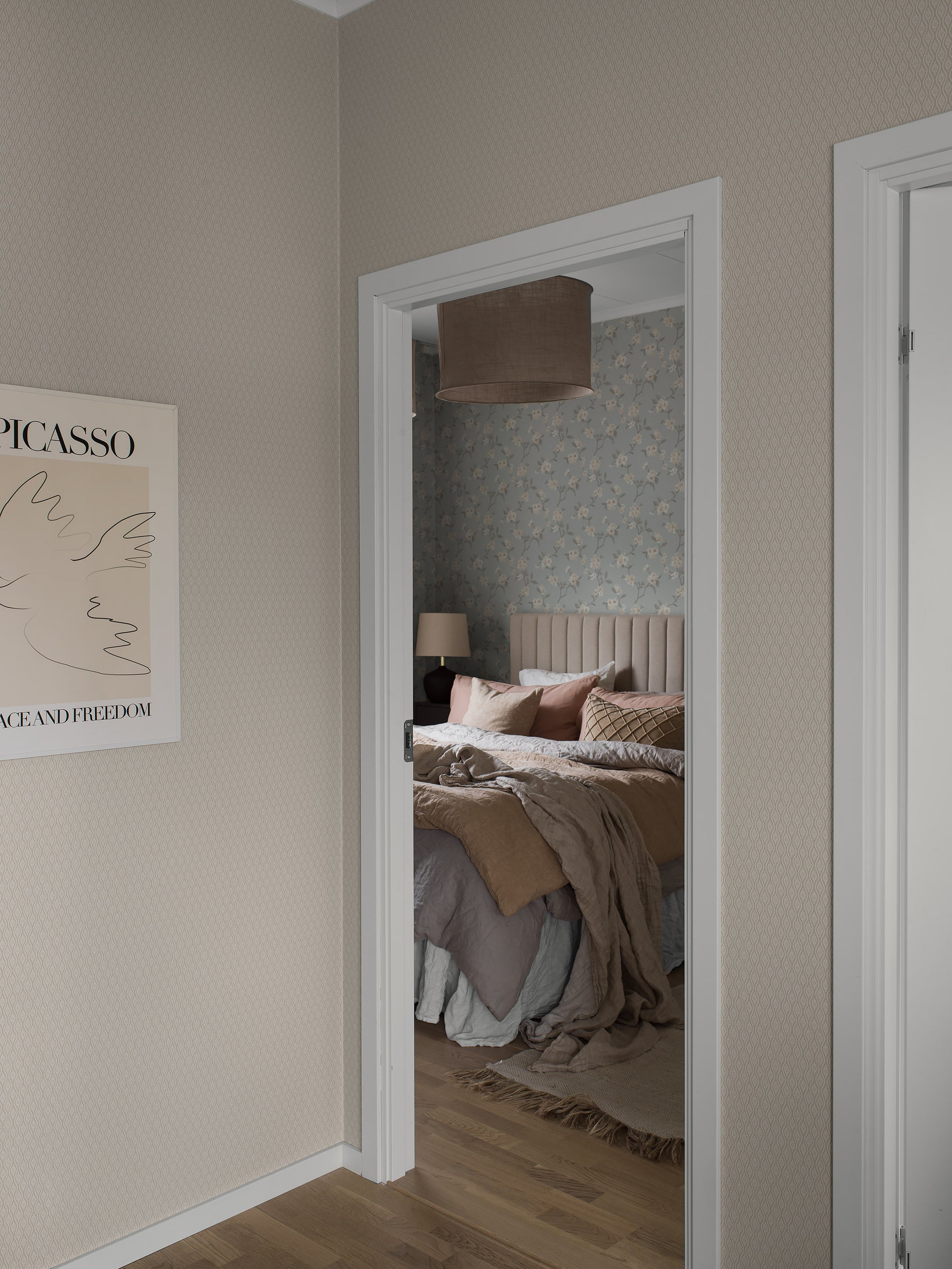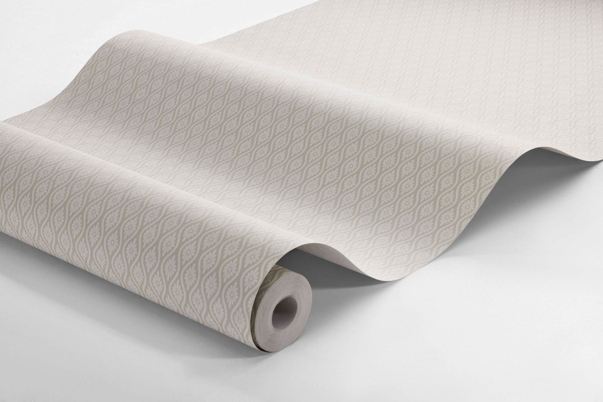 Moa on pienikuvioinen tapetti, jossa on tyyliteltyjä kukkia ja aaltomaisia raitoja. Sen koristeellinen ja hillitty kuosi on saanut innoituksensa japanilaisista kimonoista. Pienet kuviot ja tiivis sommittelu antavat kuosille luonnetta, mutta kokonaisuus näyttää etäältä harmoniselta ja yhtenäiseltä, lähes yksiväriseltä.Tässä näet Moa-kuviotapetin valkoisin yksityiskohdin vaaleanruskealla taustalla, joka taittaa hieman harmaaseen. Värimaailma on lämmin ja kutsuva, mutta samalla pelkistetty.