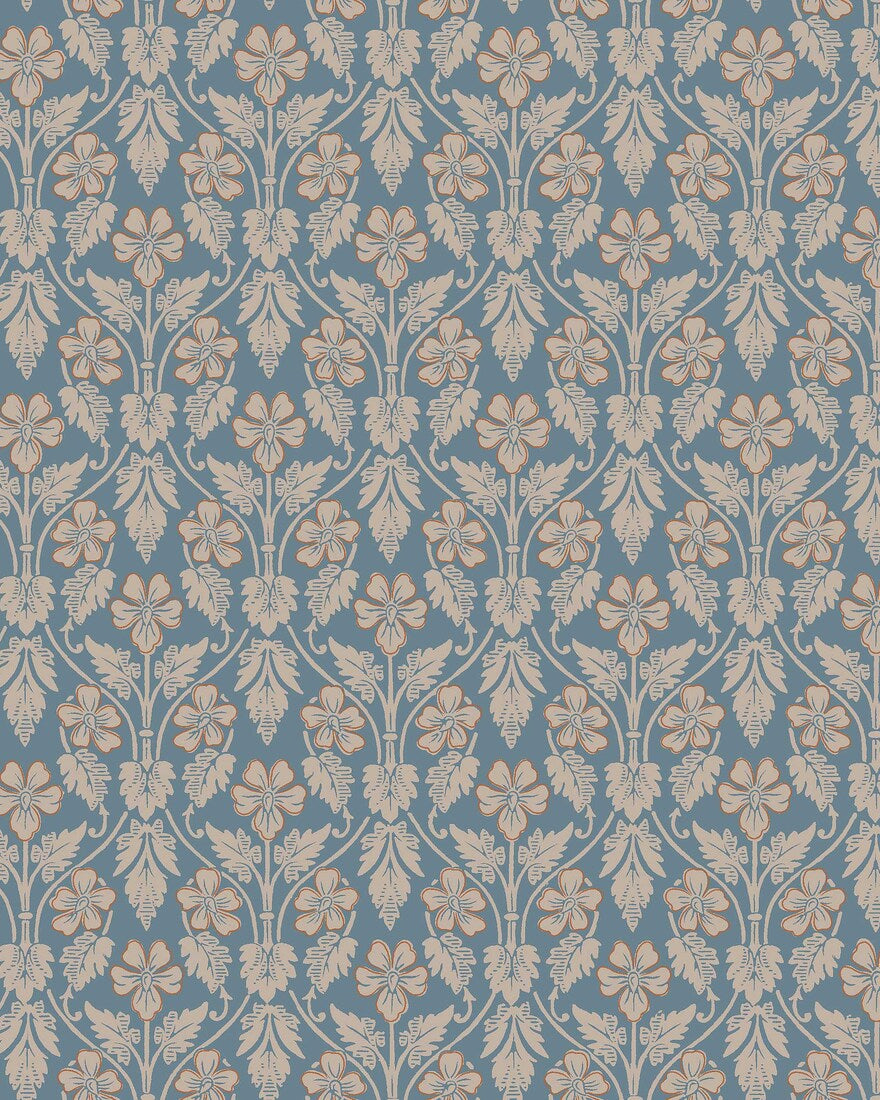 Pienikukkainen Nora-tapetti on peräisin 1890-luvun lopun tai 1900-luvun alun Ruotsista. Jugendtyylisen tapetin pehmeät pienet orvokit luovat tyylitellyn ruutukuvion, joka tekee tapetista harmonisen. Nora on saatavana kolmessa värissä. Tässä mallissa harmaanruskeat kuviot ja kullanruskeat yksityiskohdat pääsevät oikeuksiinsa harmaansinisellä pohjalla.Haluaisitko nähdä Nora-tapetin seinälläsi? Voit tilata tapettirullat yläpuolelta ja noutaa ne lähimmältä jälleenmyyjältäsi, jolle voit myös maksaa ne. Voit myös ostaa tapettinäytteitä ja lähetämme ne postitse kotiisi.