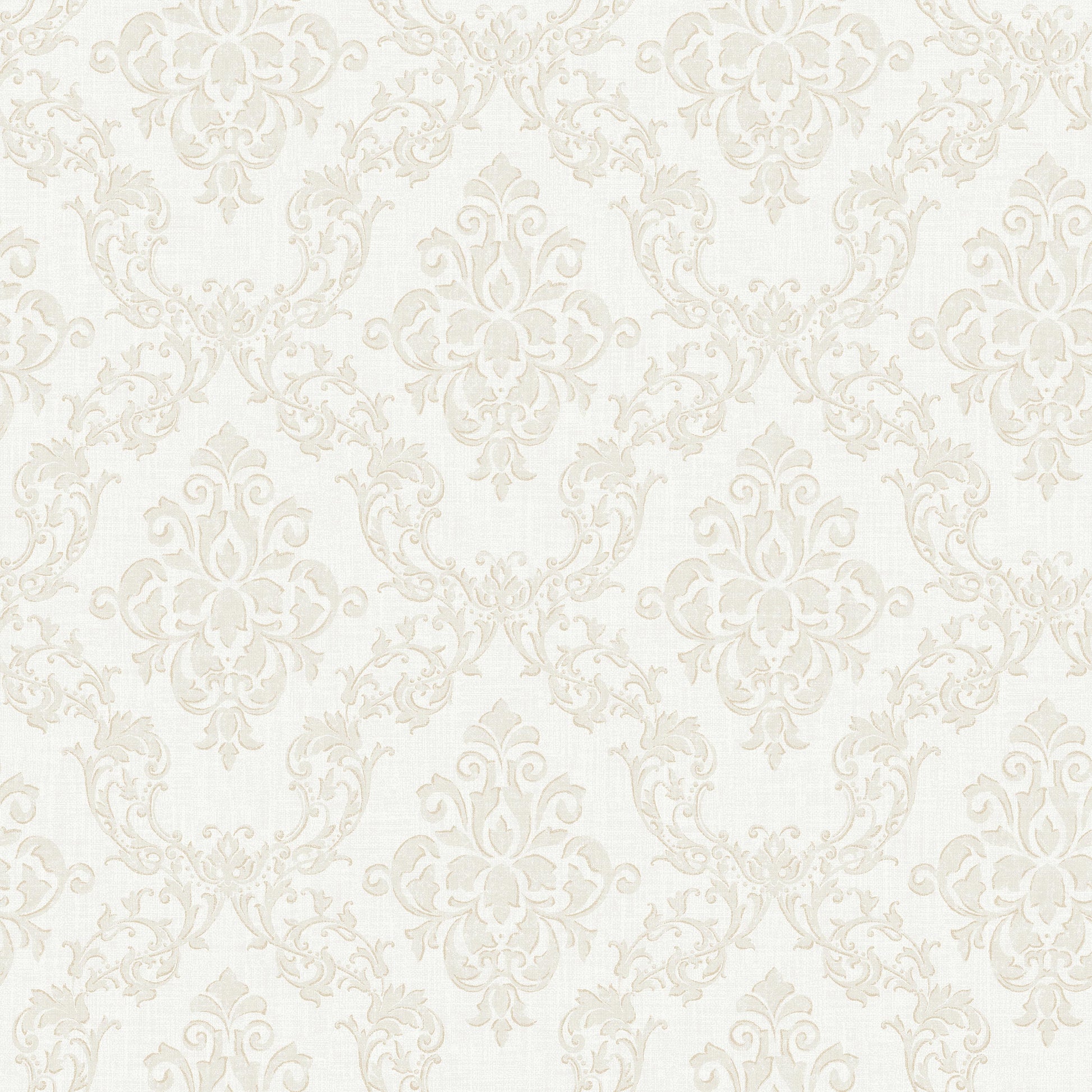 Vaalean Ottilia-tapetin medaljonkikuosi luo huoneeseen pehmeän ja kotoisan tunnelman ja antaa seinille viehättävää luonnetta. Medaljongit ovat klassinen ja ajaton aihe ja sopivat hienosti niin makuuhuoneeseen, olohuoneeseen, ruokailutilaan kuin eteiseenkin.Tässä näet Ottilia-tapetin vaaleassa värityksessä, jossa koristeellinen kuosi on painettu vaaleanharmaan sävyissä kullanhohtoisin yksityiskohdin. Tapetin tausta on lämpimän vaaleanbeige ja painettu hillityn aaltomaiseksi, mikä antaa seinille viimeistellyn ja kotoisan ilmeen.