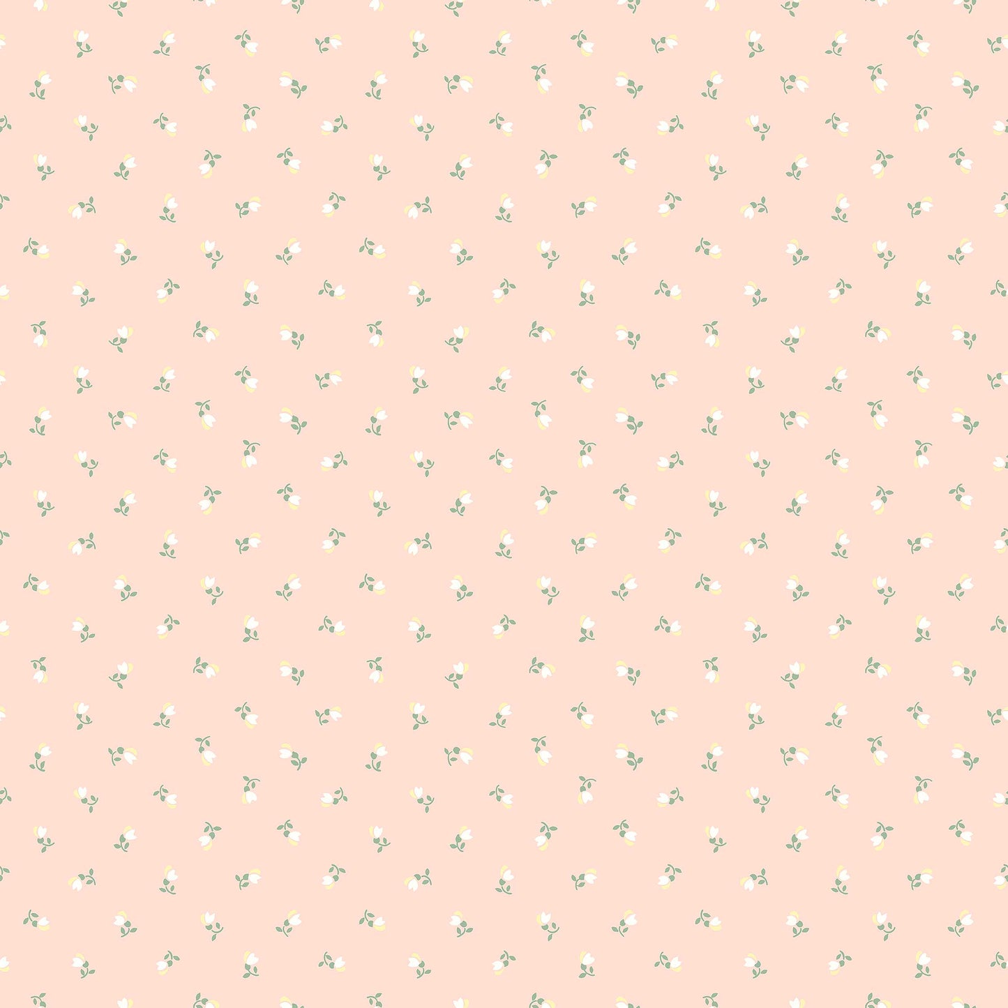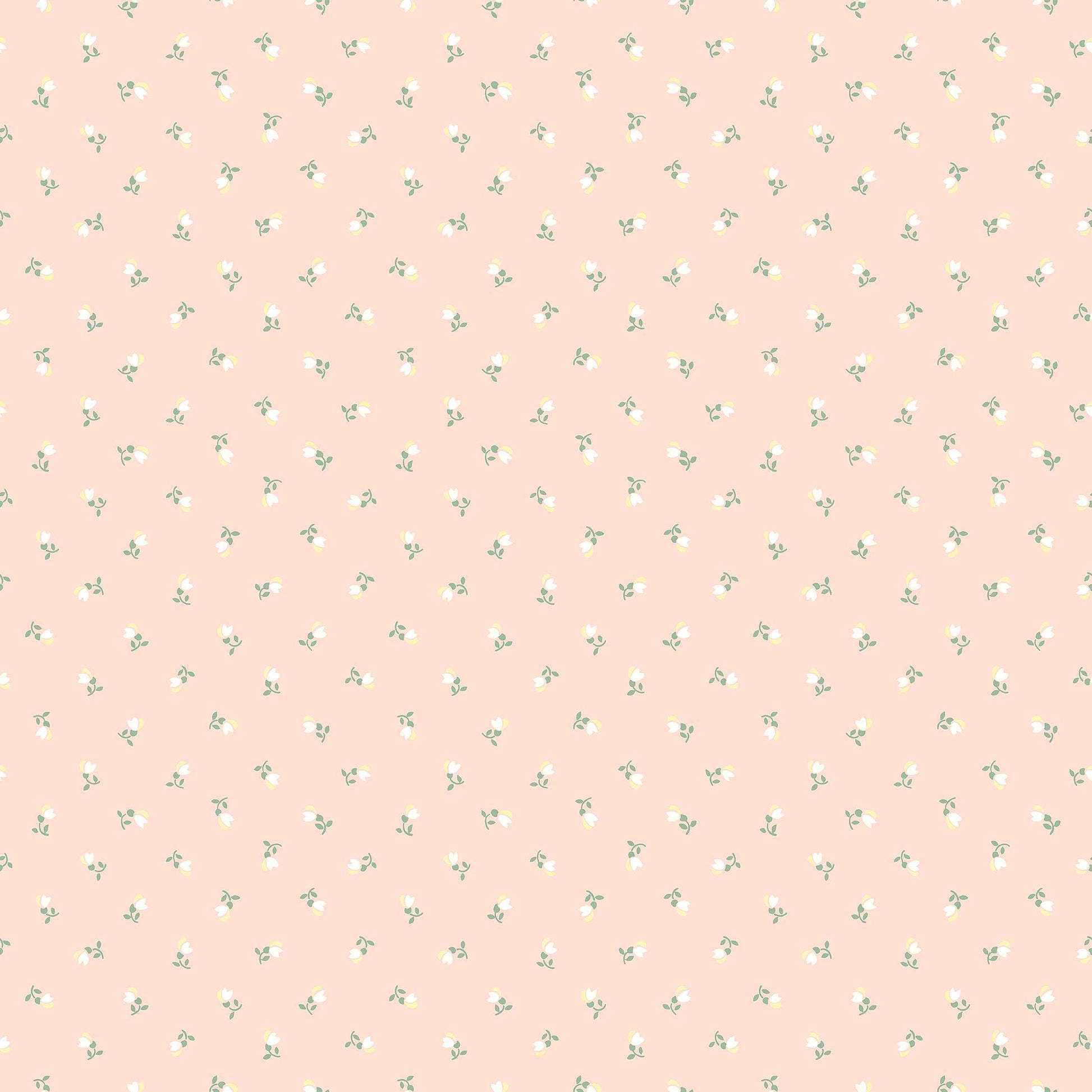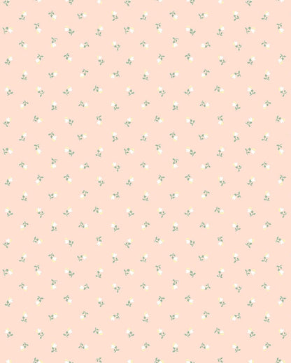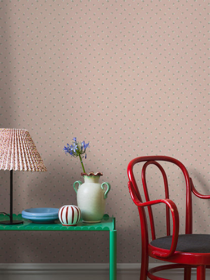 Vaaleanpunainen kukkatapetti Petite Chérie on klassinen, kodikas tapetti, joka näyttää hyvältä koko seinällä, mutta toimii hyvin myös rintapanelointiin. Alkuperäiskuosi on luullaksemme peräisin 1980-luvulta, jolloin tällaiset pienet kuviot olivat erittäin suosittuja.Tässä Petite Chérie on liimapainettu pehmeillä pastellisävyillä: vihreää, keltaista ja valkoista lämpimän vaaleanpunaisella pohjalla – aivan kuten arkistossamme oleva alkuperäinen.