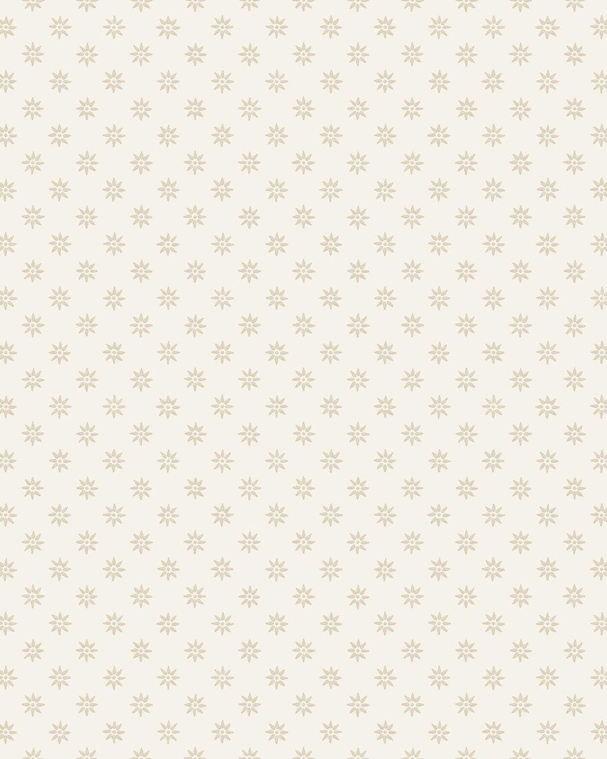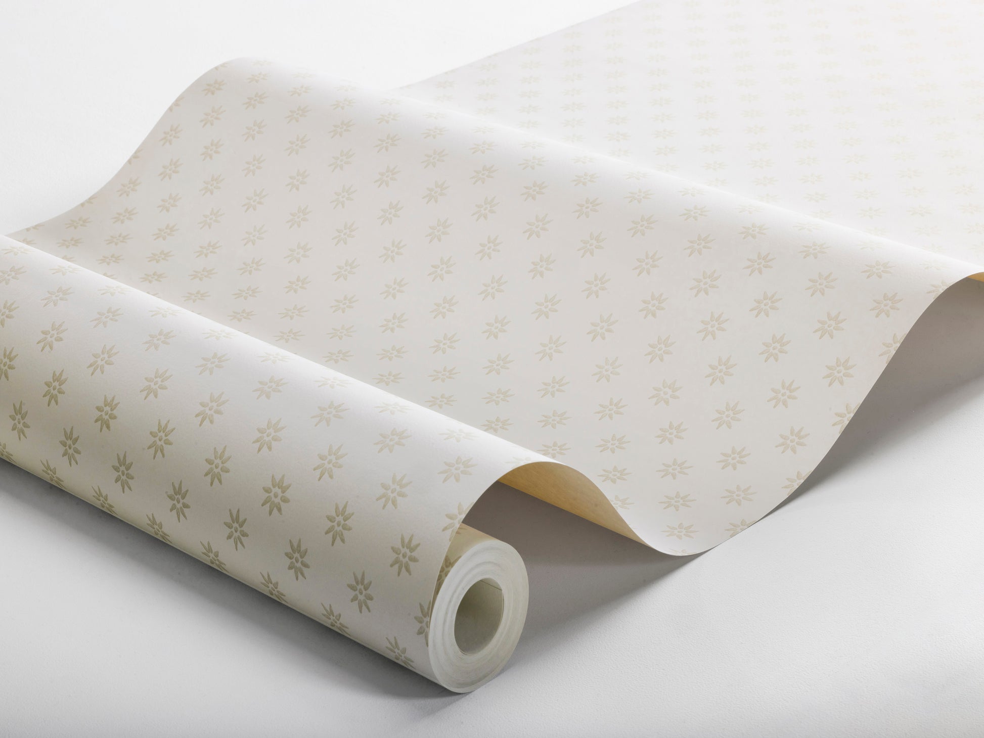 Valkoinen Skogsstjärna-tapetti on peräisin historiallisesta arkistostamme. Sen nimi juontuu suloisesta pienestä metsätähdestä, joka somistaa metsiämme aina keväällä. Suloiset pienet tähtimäiset kukat muodostavat kaukaa katsottuna rauhallisen ja yhtenäisen pinnan ja tuovat samalla eloa ja syvyyttä seinään.Ohessa Skogsstjärna-tapetti, jossa on kermanvalkoinen pohja ja beigenvärisiä pieniä kukkia.