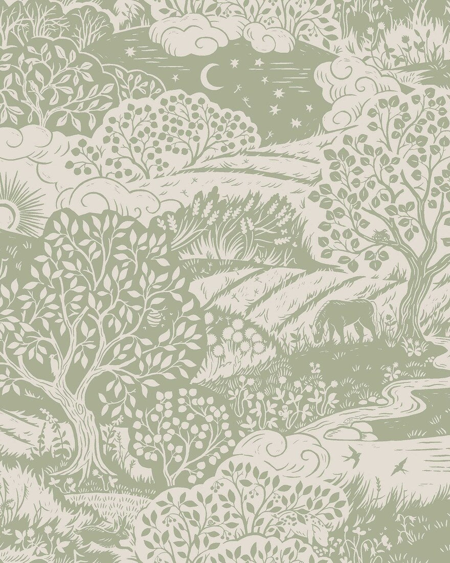 Solängen-tapetti luo seinälle vehreän maiseman kukkaniittyineen, metsikköineen ja kumpuilevine vehnäpeltoineen. Tapetista voi löytää auringonnousun, puolikuun ja paljon erilaisia eläimiä. Rauhallisessa ja harmonisessa kokonaisuudessa on runsaasti kauniita yksityiskohtia.Tässä Solängen-tapetissa on pehmeä mutta samaan aikaan raikas lämpimänvihreä värimaailma, jossa on vaaleita pellavabeigejä yksityiskohtia. Suunnittelija: Jenny Hahne Gadd.