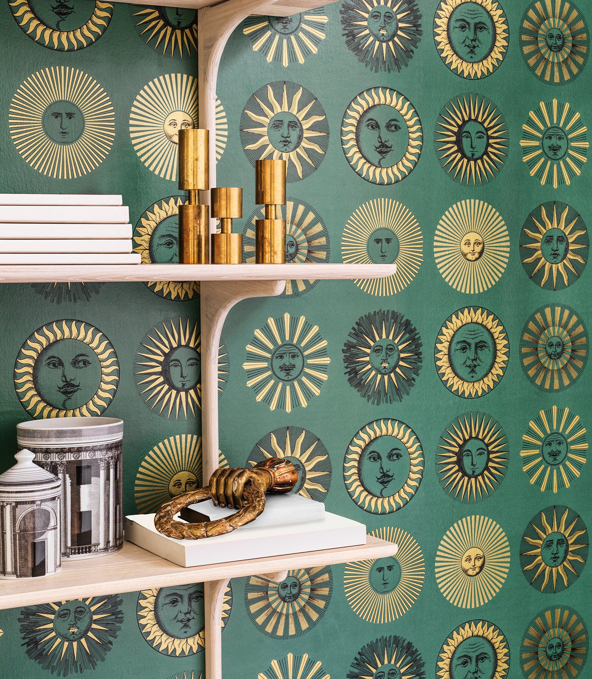 Fornasettin ateljeen Sol- tapetin aurinkoteema on yksi ateljeen klassikkoteemoista. Teema on saanut alkunsa siitä, että Piero Fornasetti suunnitteli 1940-luvun alussa Gio Pontin pyynnöstä kuuteemaisia almanakkoja joululahjoiksi.