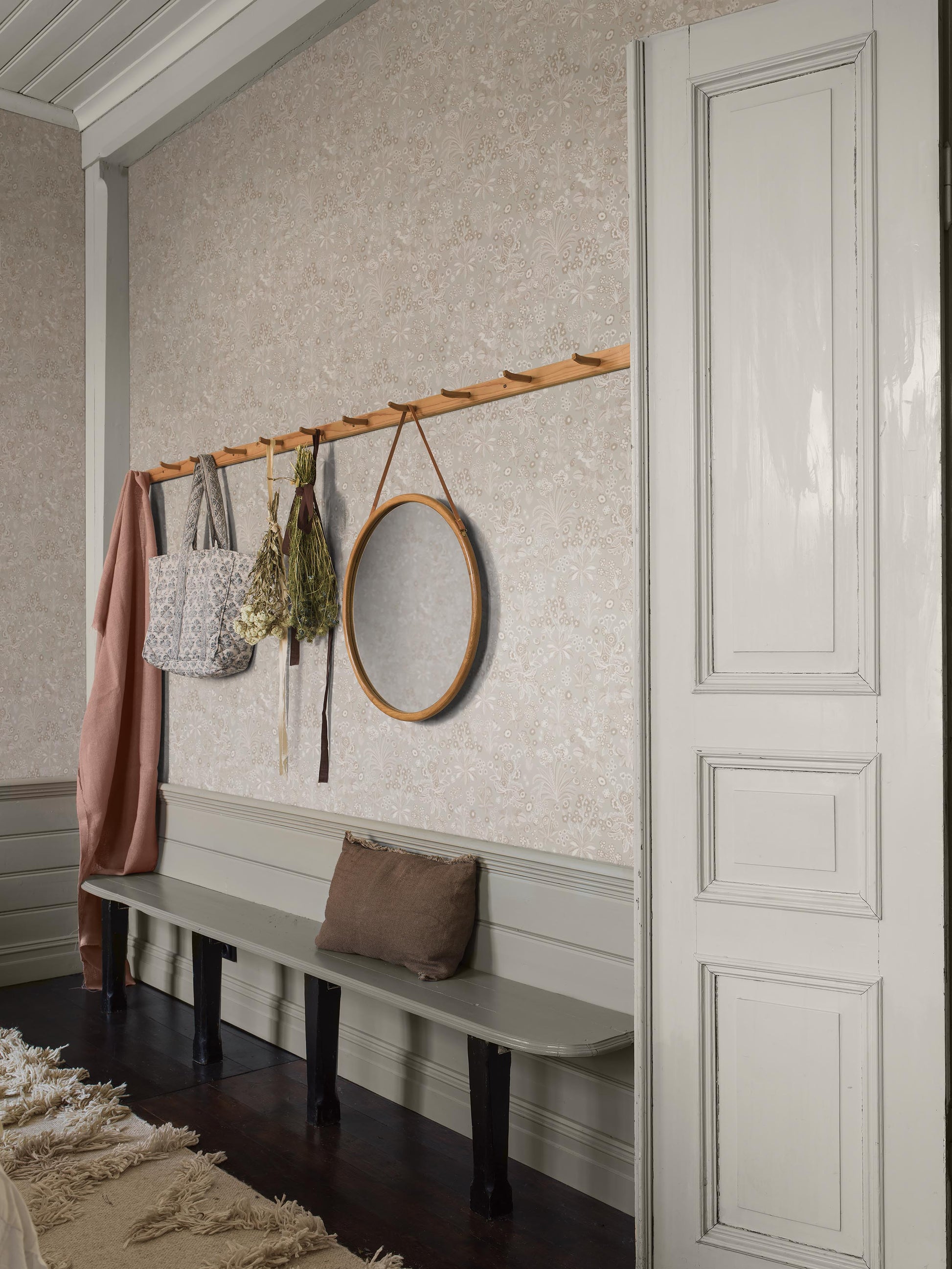 Tuva on ajaton kukkatapetti, joka on täynnä pieniä ja somia mielikuvituskukkia. Tapetissa on paljon yksityiskohtia, mutta tiiviydestään huolimatta kuosi tuntuu rauhalliselta ja harmoniselta seinällä.Tässä syväpainetussa Tuva-tapetissa on lämmin, melko neutraali värimaailma, jossa on pehmeän vaaleanharmaa pohja ja kermanvalkoisia ja beigenvärisiä yksityiskohtia.