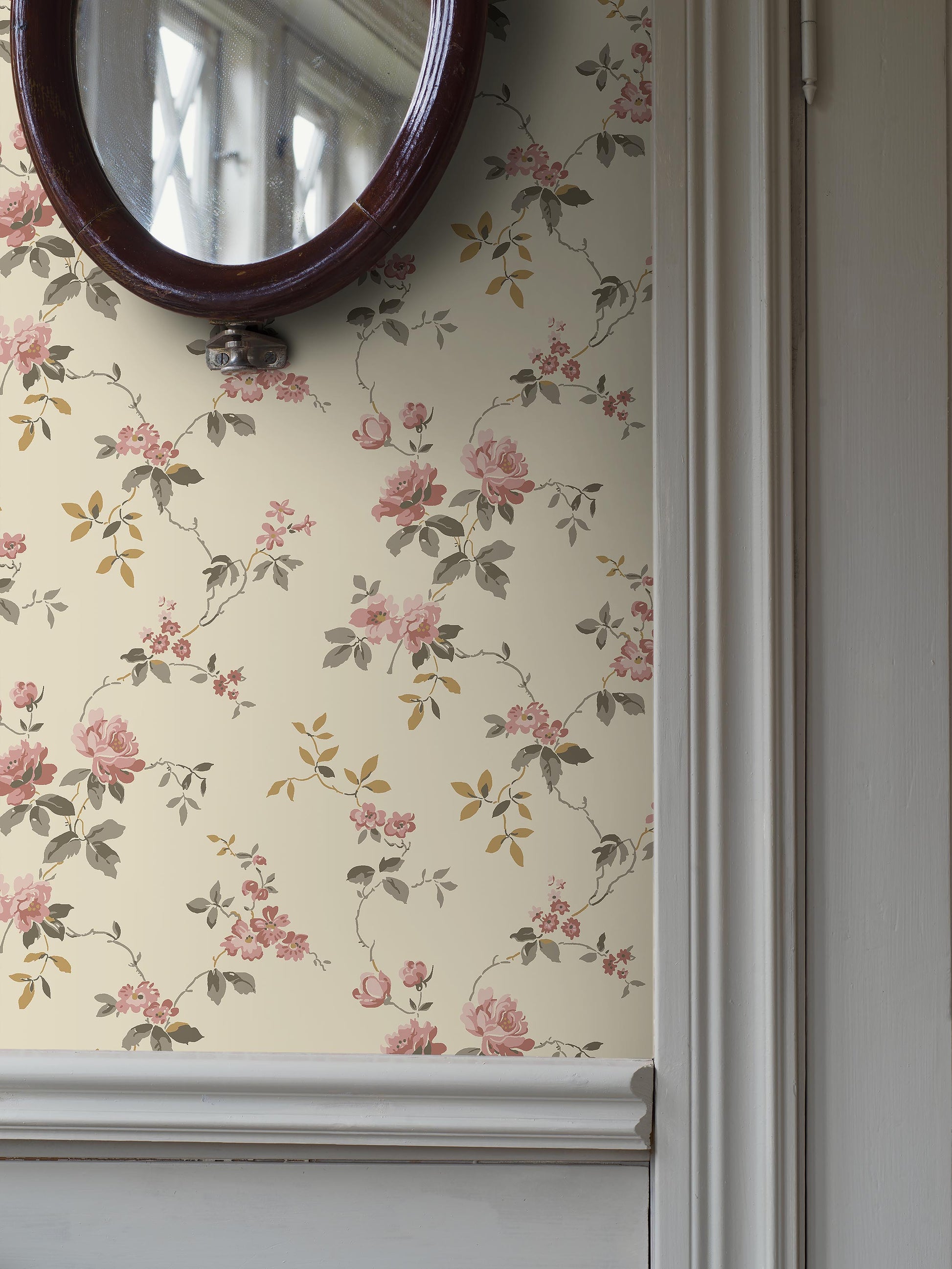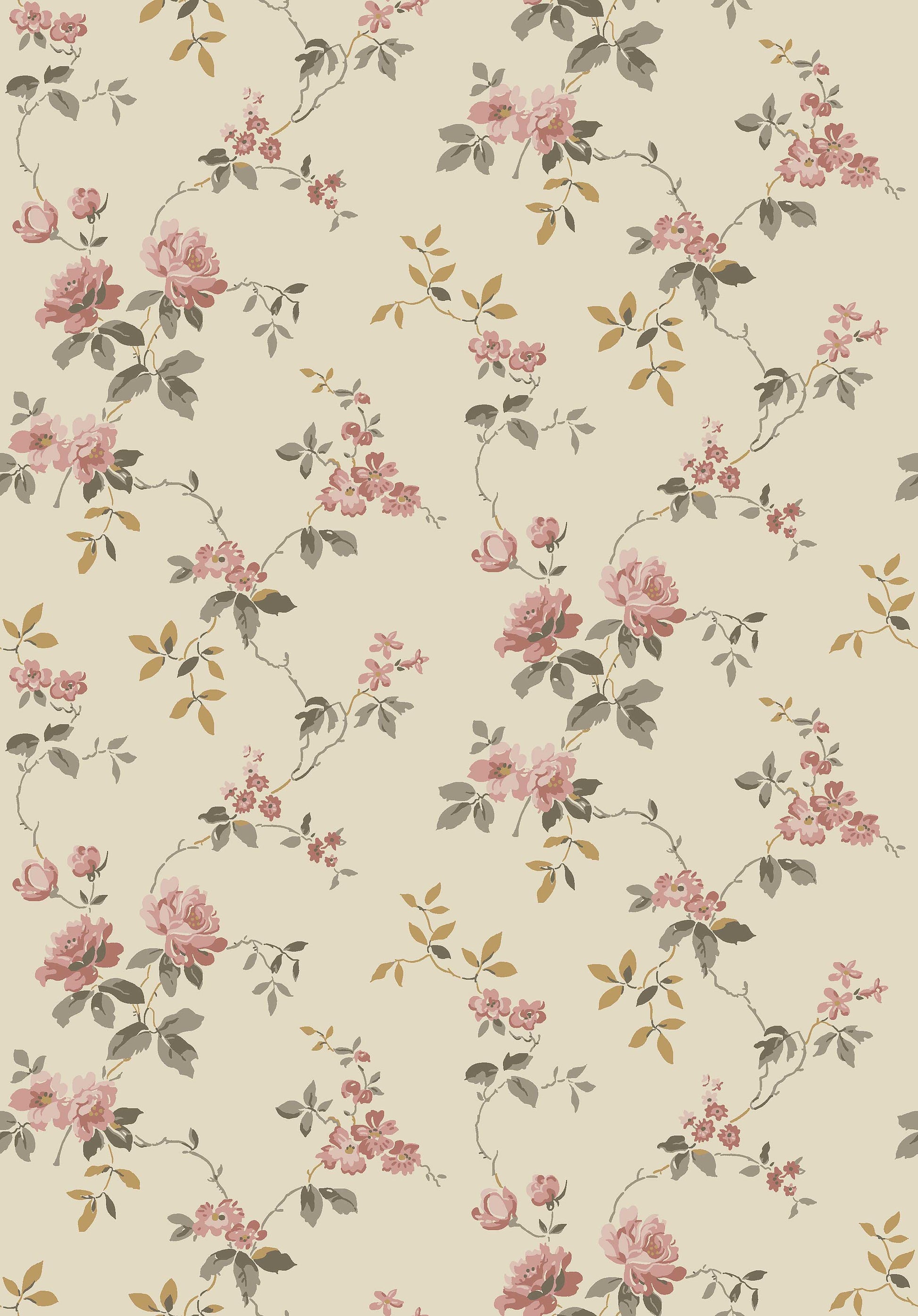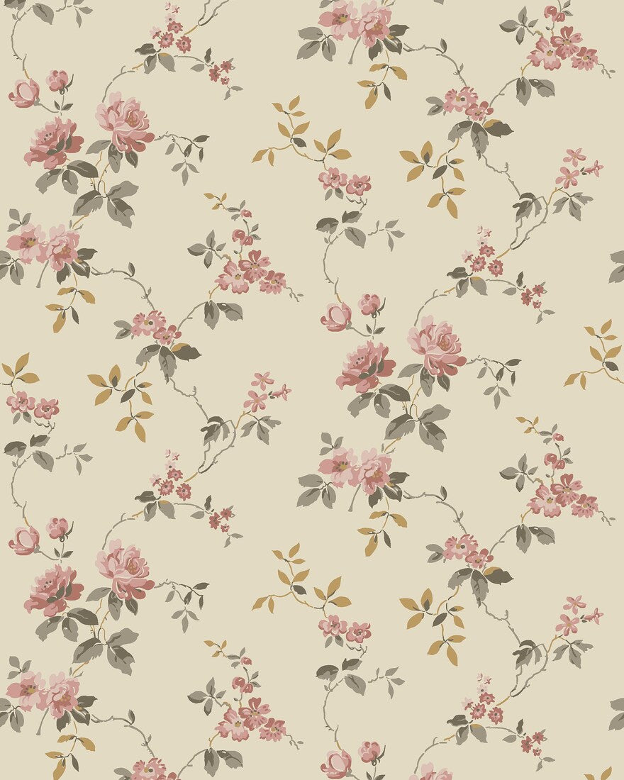 Värmdö on romanttinen kukkatapetti, joka on valmistettu 1920-luvun alkuperäisen mallin mukaan. Ilmava, suloinen kuosi ja sen köynnöstävät ruusut ovat peräisin Nordiska-museon kokoelmista ja tyypillisiä juuri tälle aikakaudelle. Tapetti oli aiemmin esillä Villa Bråvalla -nimisessä kesähuvilassa Värmdön kunnassa Gustavsbergin ulkopuolella.Täällä näet vaalean Värmdö-tapetin alkuperäisessä värimaailmassa, jossa on harmaanruskeita ja keltaruskeita lehtiä ja erisävyisiä roosan värisiä ruusuja kermanvärisellä pohjalla.